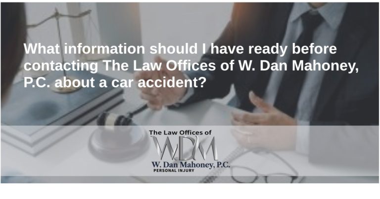 The Law Offices of W. Dan Mahoney, P.C.(303) 407-0484 When you call The Law Offices of W. Dan Mahoney, P.C. about your car accident injury, we’ll listen to your story, answer your questions, and explain your options—all with no cost…